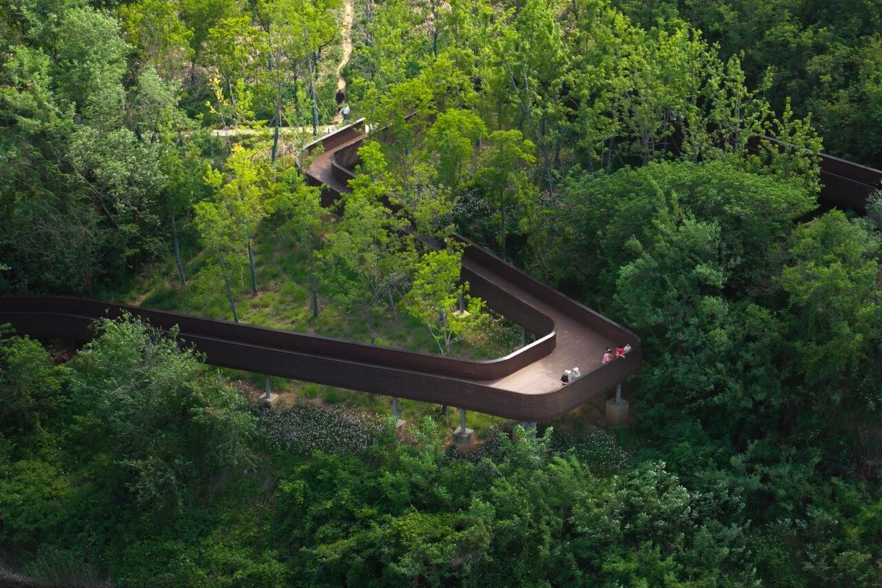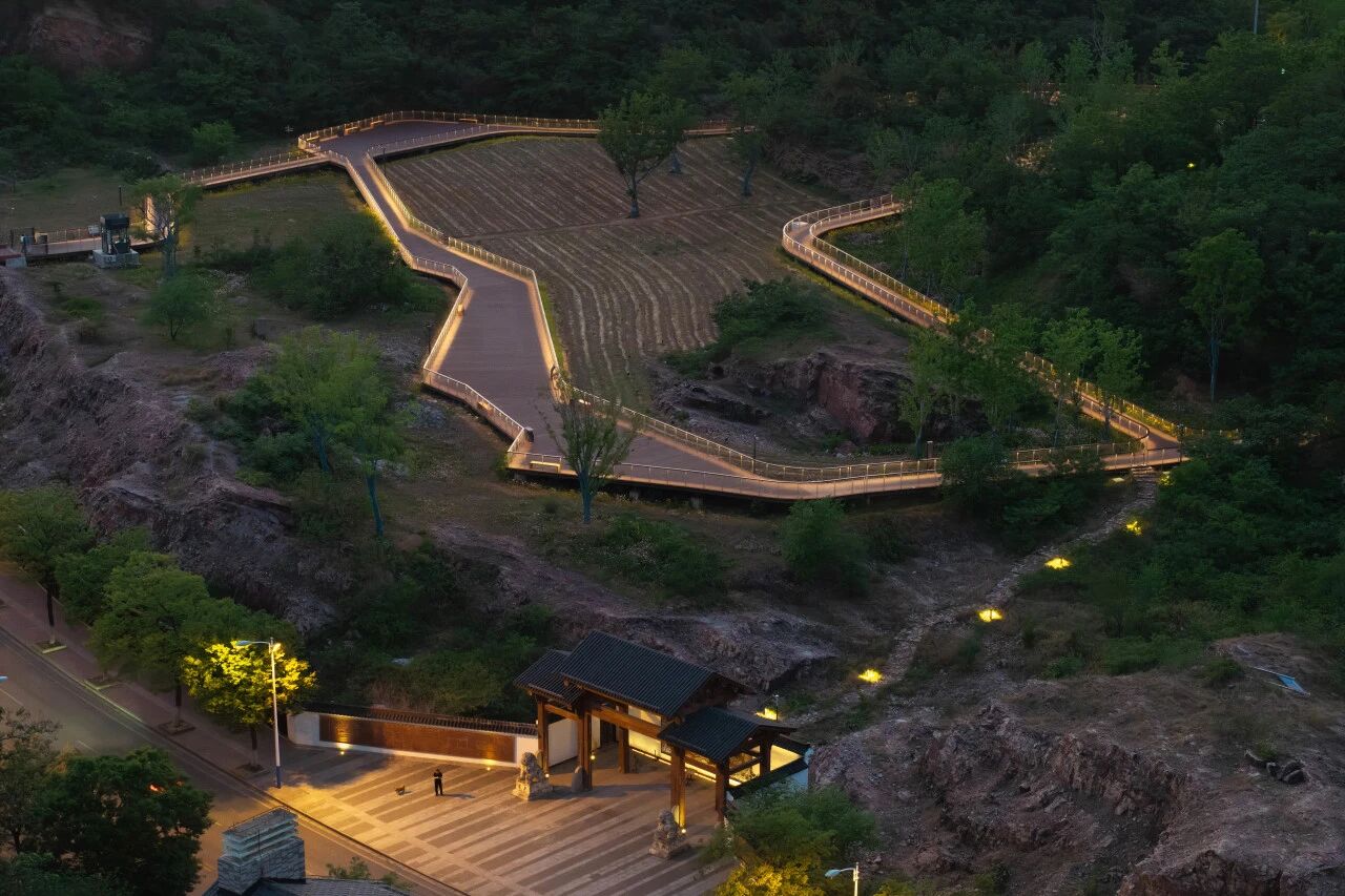 该公园战略性地连接了北部生态走廊与南部紫砂文化走廊,西侧连接紫砂源广场与青龙山公园,在城市肌理中扮演着关键的文化枢纽角色。悟空(中国)希望通过多专业的融合,以低介入设计方式,为市民呈现一个可公众参与、包含文化属性的生态地质展厅,以此来实现城市共生与历史采石场遗址的再利用。